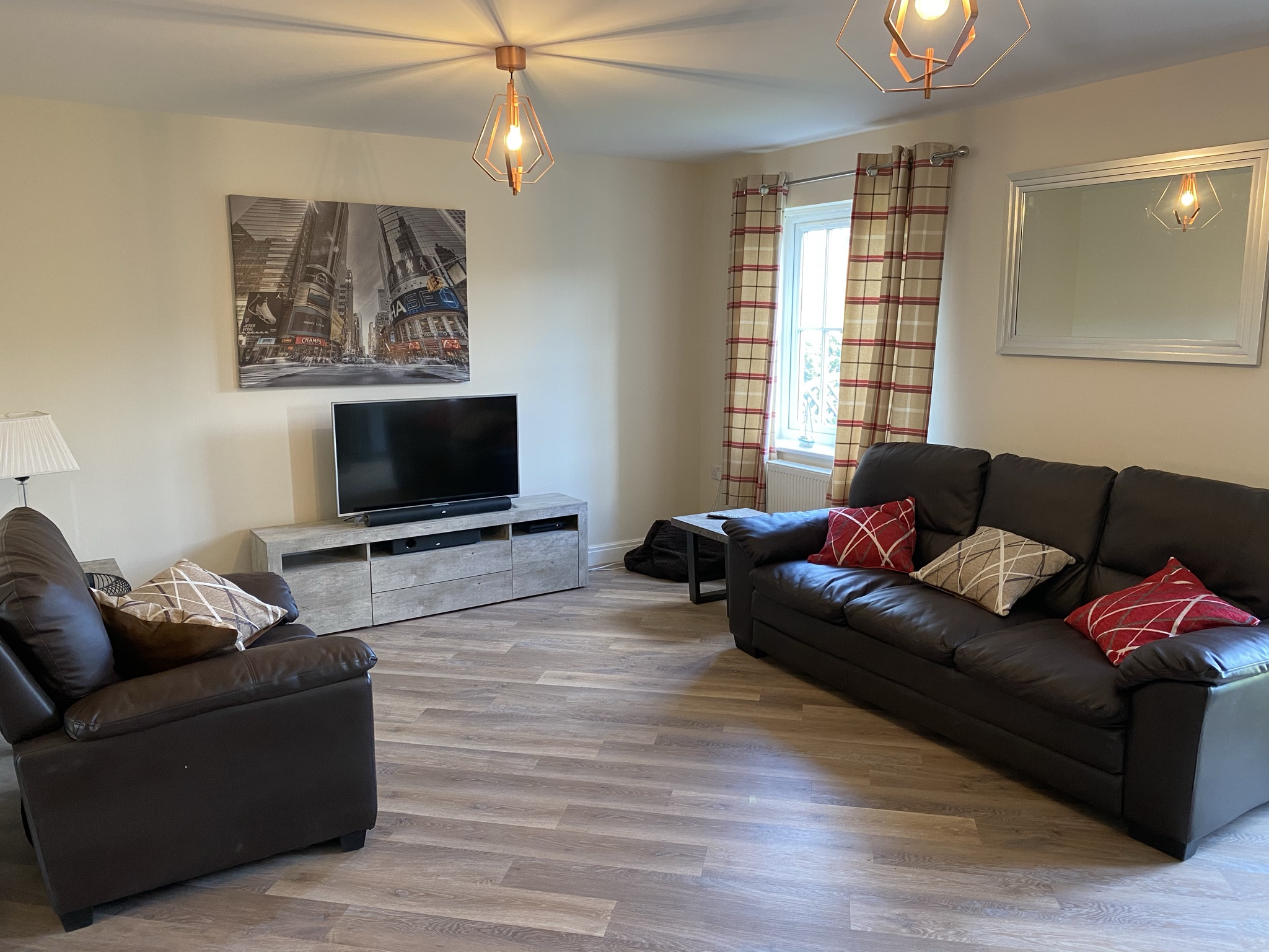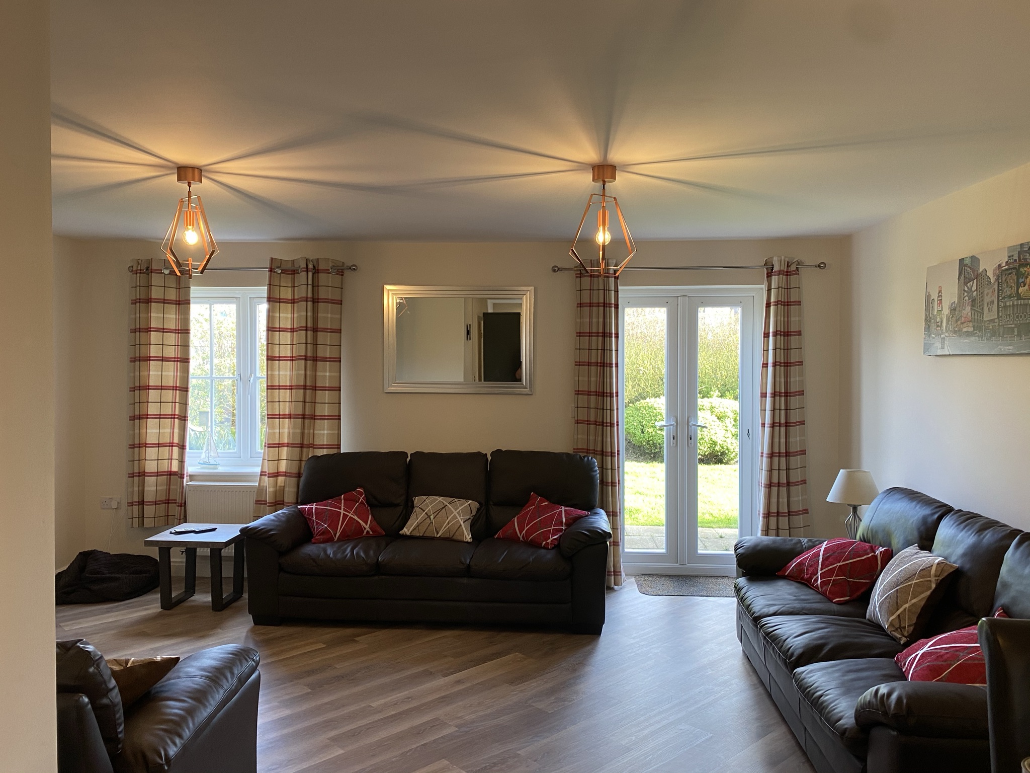 The property comprises of a master bedroom with king size bed, en suite shower room, 1 double and 1 twin room including additional put me up single bed if required, family bathroom; bath with overhead shower, an open plan L shaped lounge with two leather sofas and an easy chair, dining room with table and chairs for six, and fully fitted kitchen including dishwasher, washer/dryer and microwave, separate hallway leading to downstairs cloakroom/toilet. French doors open onto a furnished patio, surrounded by a shared garden and landscaped grounds in close vicinity to the wild meadows and lake.
